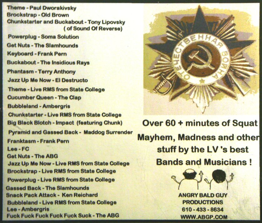 Tribute CD of Lehigh Valley Bands covering songs by the Russian Meatsquats. Featuring the tracks “Lee” and “Bubbleland”. Released November, 2001.