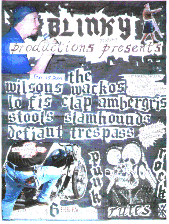 - 1/15/2005 – Blinky’s Annual Benefit Show w/ The Clap, Slamhounds, Stools T.D.D., Lo-Fi’s, Defiant Trespass – St. Bernard’s, Bethlehem PA