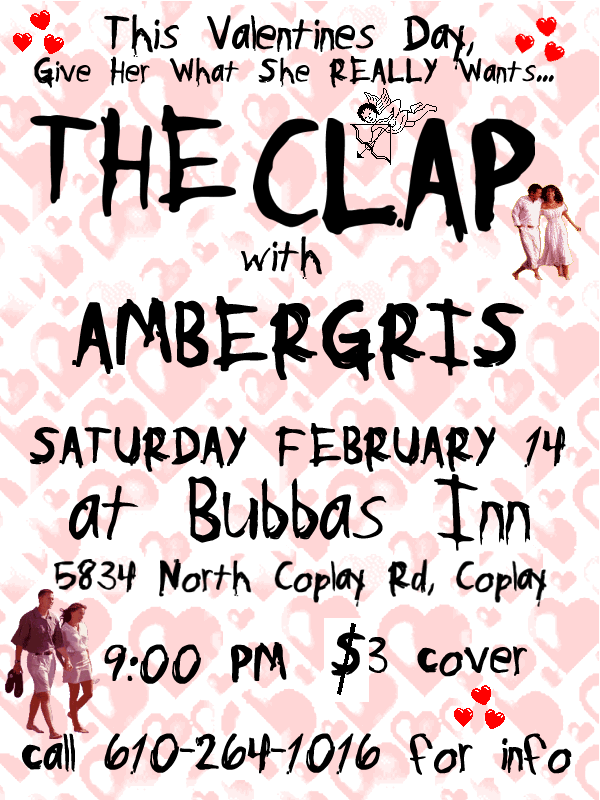 - 2/14/2004 – VALENTINE’S DAY w/ The Clap, The Lo-Fi’s – Bubba’s Inn, Coplay PA flyer 2 flyer 3