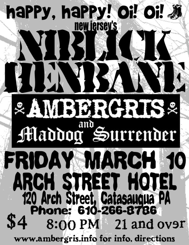 - 3/10/2006 – w/ Niblick Henbane, Maddog Surrender – Arch Street Hotel, Catasauqua PA
