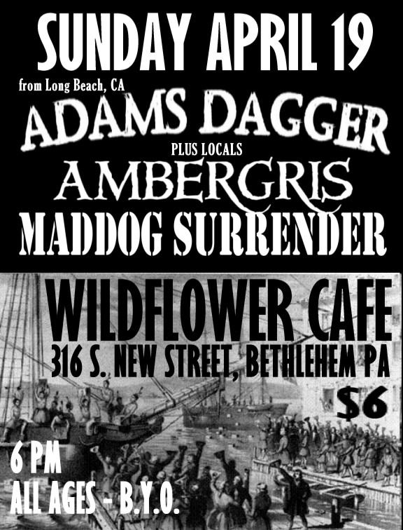 - 4/19/2009 – w/ Maddog Surrender, Adam’s Dagger – Wildflower Cafe, Bethlehem PA flyer 2
