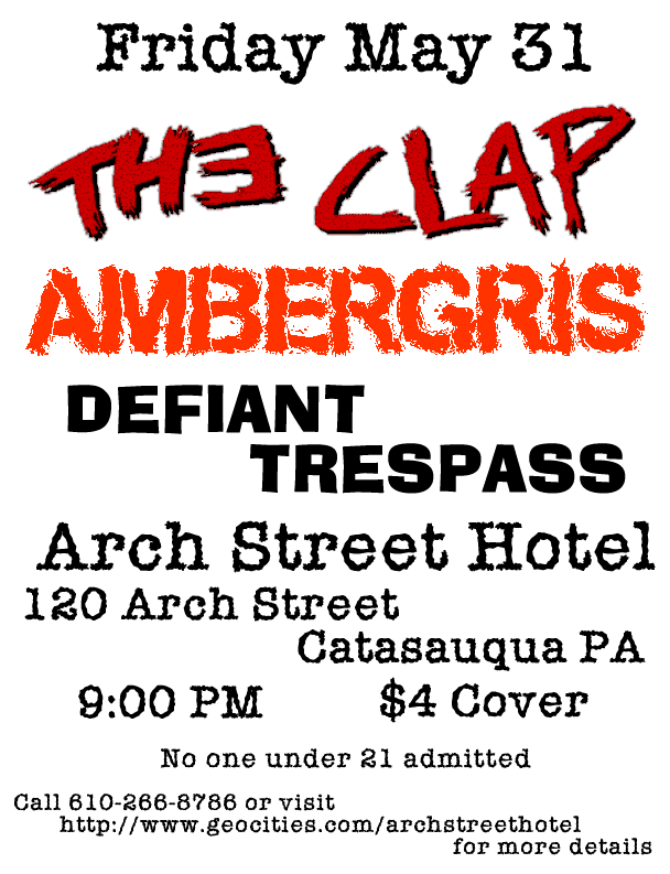 - 5/31/2002 – w/ Defiant Trespass, The Clap – Arch Street Hotel, Catasauqua PA flyer 2 – TRUMAN’S FIRST SHOW