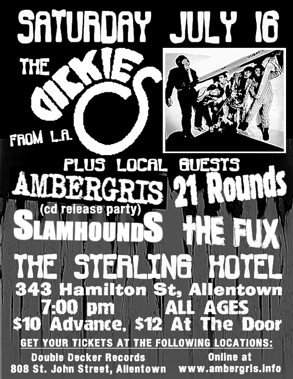 - 7/16/2005 – w/ The Dickies, 21 Rounds, Slamhounds, Urban Chaos, The Ratchets, the Fux – The Sterling Hotel, Allentown PA