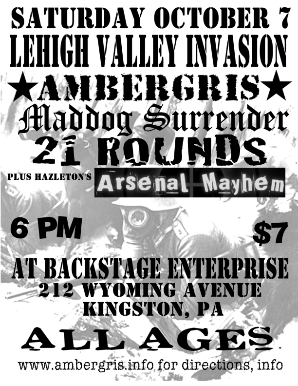- 10/7/2006 – w/ 21 Rounds, Maddog Surrender, Arsenal Mayhem – Backstage Enterprizes, Kingston PA
