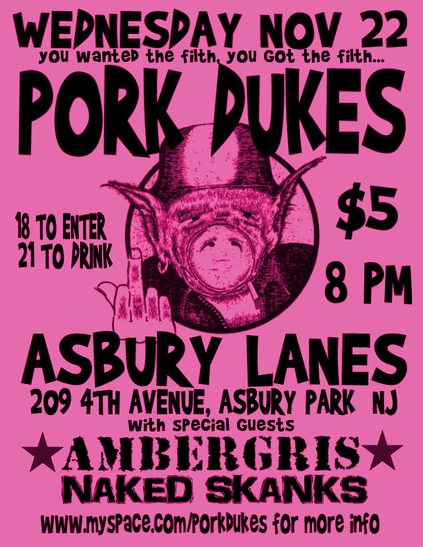 - 11/22/2006 – w/ Pork Dukes, Naked Skanks – Asbury Lanes, Asbury Park NJ