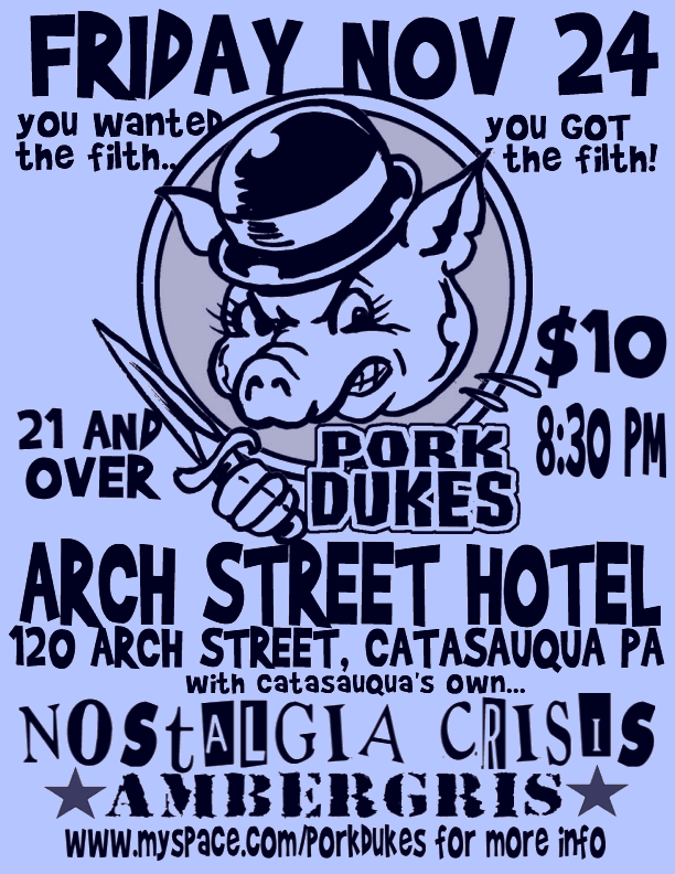 - 11/24/2006 – w/ Pork Dukes, Nostalgia Crisis – Arch Street Hotel, Catasauqua PA