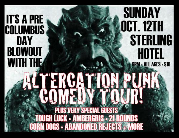 - 10/12/2008 – Altercation Punk Standup Tour w/ Abandoned Rejects, 21 Rounds, The Corndogs, Tough Luck – Sterling Hotel, Allentown PA