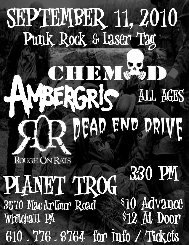 - 9/11/2010 – w/ Chem-D, Dead End Drive, Rough On Rats – Planet Trog, Whitehall PA