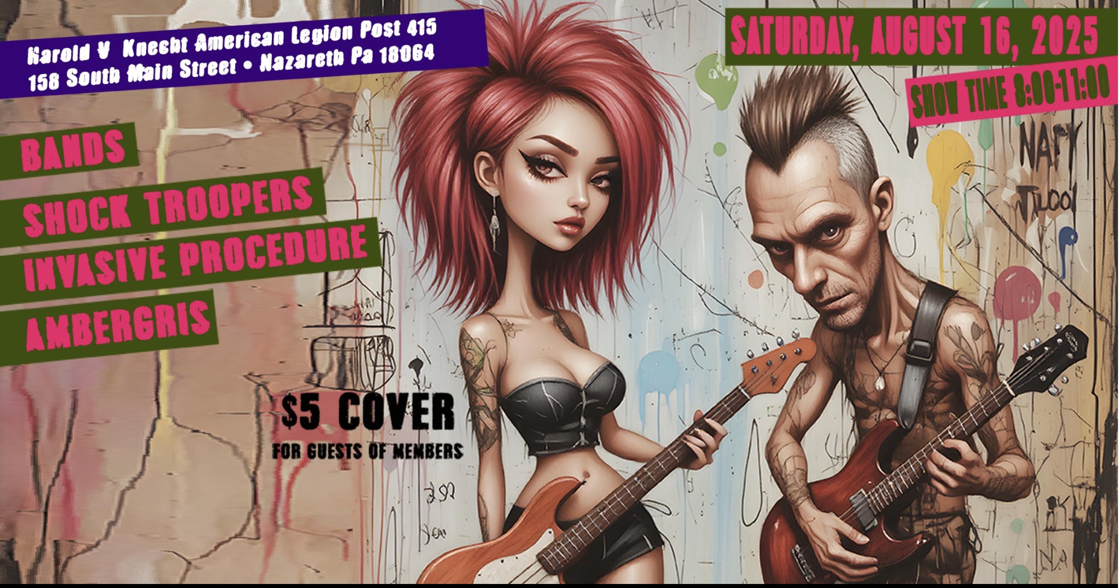 - 8/16/2025 – w/ Shocktroopers, Invasive Procedure – American Legion Post 415, Nazareth PA