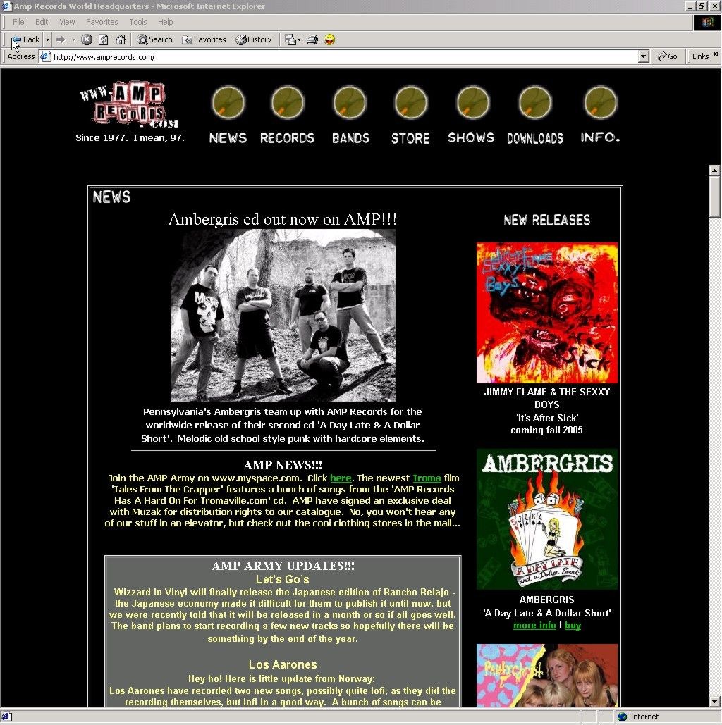 In other news, we're currently the top item on the news page of AMP Records with the release of our new disc. If you don't feel like clicking, I have the page reproduced here (click for full-size version):