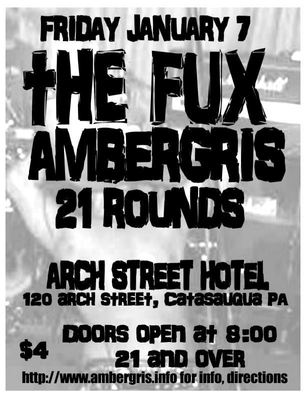 - 1/7/2005 – w/ The FUX, 21 Rounds – The Arch Street Hotel, Catasauqua PA