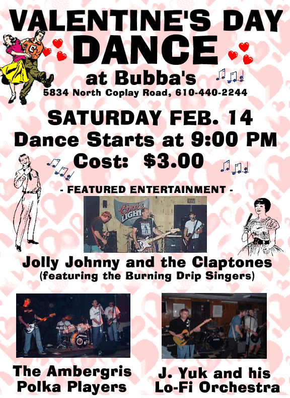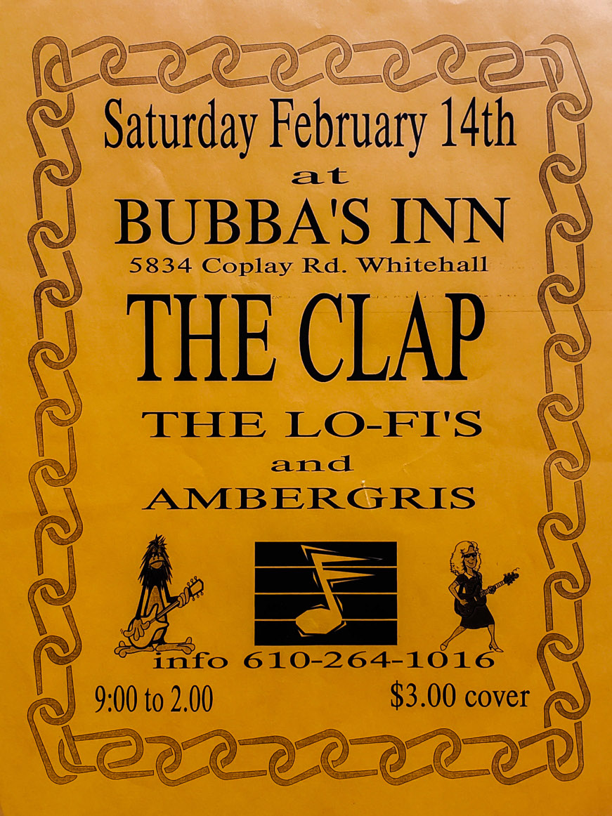 - 2/14/2004 – VALENTINE’S DAY w/ The Clap, The Lo-Fi’s – Bubba’s Inn, Coplay PA flyer 2 flyer 3