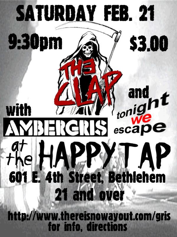 - 2/21/2004 – w/ The Clap, Tonight We Escape – The Happy Tap, Bethlehem PA