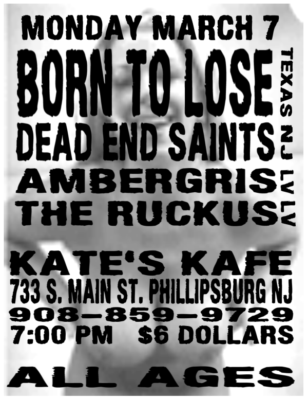 - 3/7/2005 – w/ Born To Lose, Dead End Saints, The Ruckus – Kate’s Kafe, Phillipsburg NJ