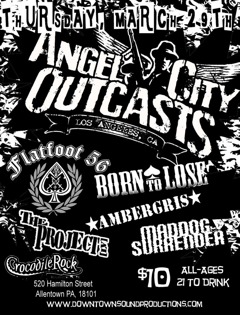 - 3/29/2007 – w/ Angel City Outcasts, Born To Lose, Flatfoot 56, The Project LV, Maddog Surrender – Crocodile Rock, Allentown PA flyer 2