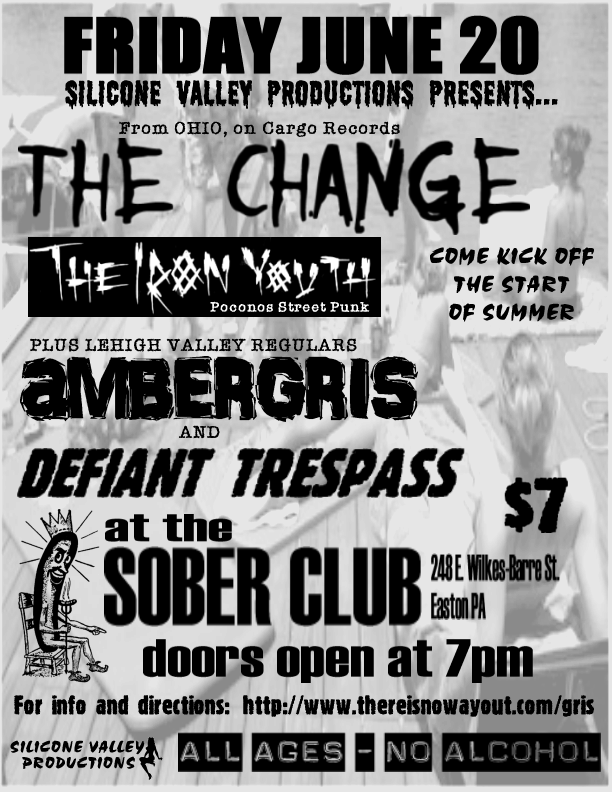 - 6/20/2003 – w/ The Change, Iron Youth, Defiant Trespass, No Silence – The Sober Club, Easton PA
