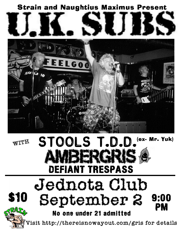- 9/2/2002 – w/ UK Subs, Stools T.D.D., Defiant Trespass – The Jednota Club, Catasauqua PA