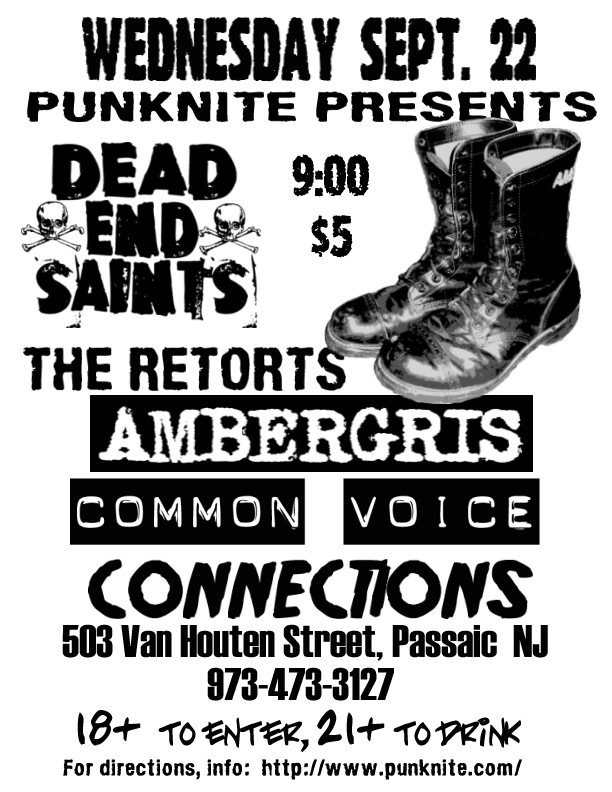 - 9/22/2004 – w/ Common Voice, The Retorts, Dead End Saints – Connections, Passaic NJ