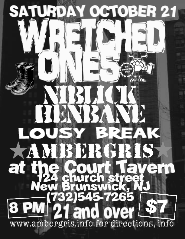 - 10/21/2006 – w/ Wretched Ones, Niblick Henbane, Lousy Break – The Court Tavern, New Brunswick NJ flyer 2