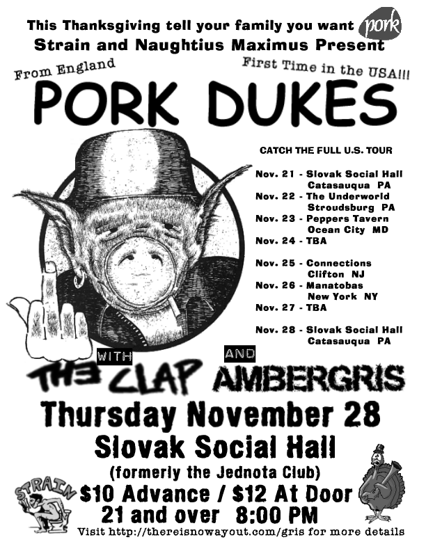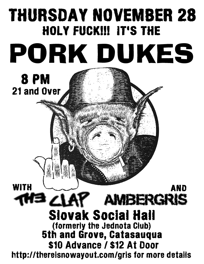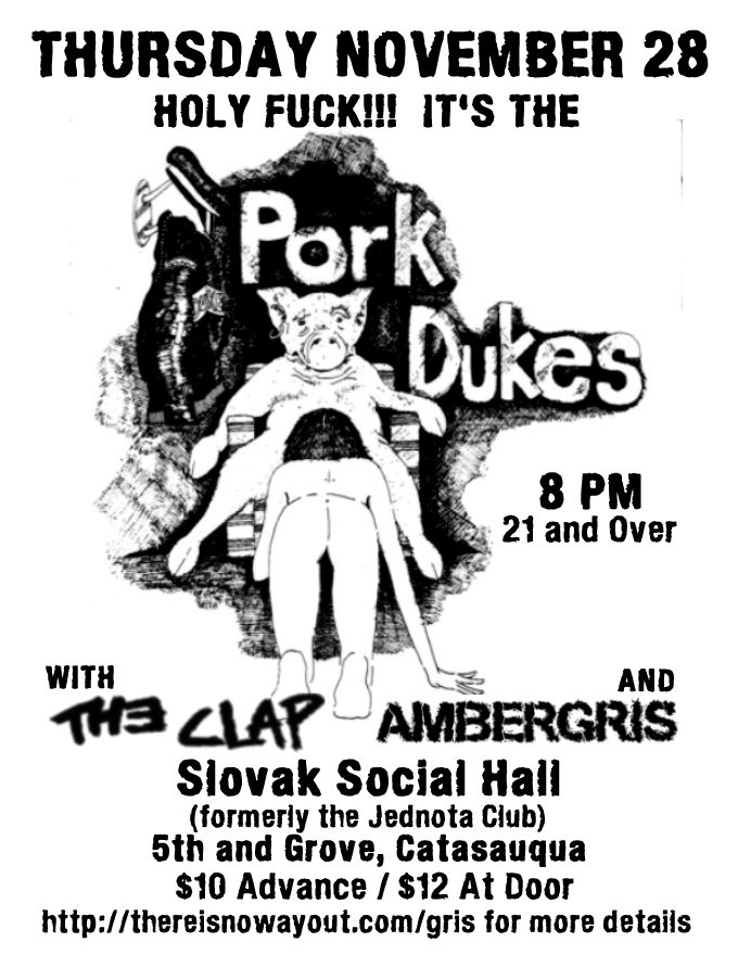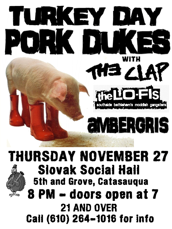 - 11/28/2002 – w/ Pork Dukes, The Clap, Slamhounds – The Jednota Club, Catasauqua PA flyer 2 flyer 3 flyer 4 flyer 5 flyer mini
