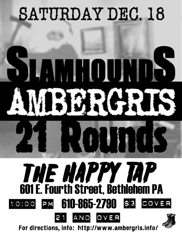 - 12/18/2004 – w/ Slamhounds, 21 Rounds, Common Voice – The Happy Tap, Bethlehem PA in memoriam