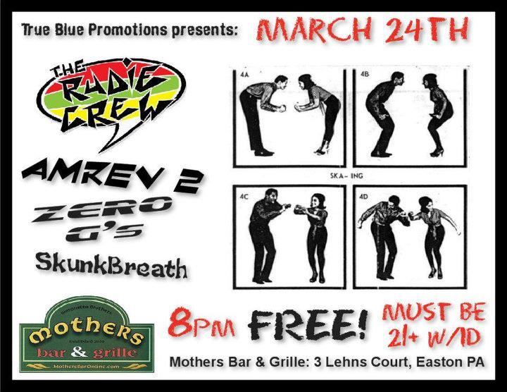 - 3/24/2012 – (Zero G’s) – w/ The Rudie Crew, Amrev 2, Skunk Breath – Mother’s Bar and Grille, Easton PA